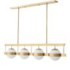 Mid-Century Modern in style, Chandelier Biba is a great lighting solution for contemporary open plan living areas. This handsome linear bar pendant features a rectangular frame with an antique brass finish that holds 5 white glass globes. It works really well over a large dining table or kitchen island.