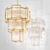 Create a fascinating focal point in your interior with the scintillating Jet Set Chandelier. This enchanting Art Deco pendant features curved gold finished panels with decorative clear glass rods.
