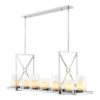 The glossy polished stainless steel frame of the Summit Chandelier comprises two square panels with an integrated x-shaped design.